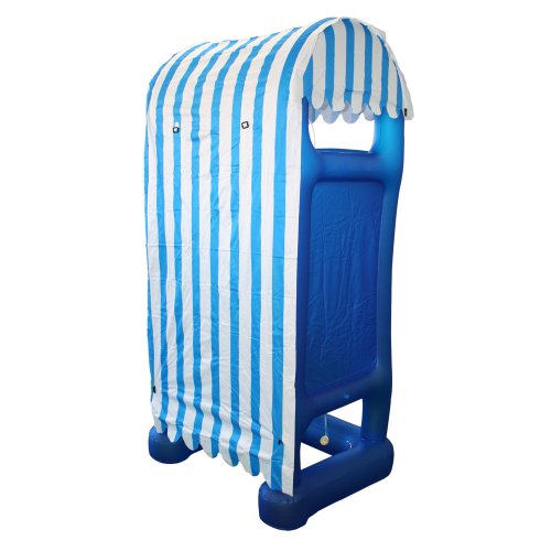 This 72-inch inflatable pool shower/cabana offers a unique combination of features. It easily inflates and comes with a water-weighted base for upright sturdiness. Features a built-in shower head and an on/off water valve that connects quickly and easily to a standard garden hose. The roll-up privacy curtain with tie backs makes it a great changing cabana, too.